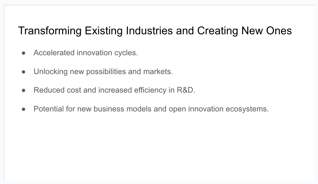 I believe this technology has the potential to revolutionize how we innovate across a wide range of fields. Imagine a future where: