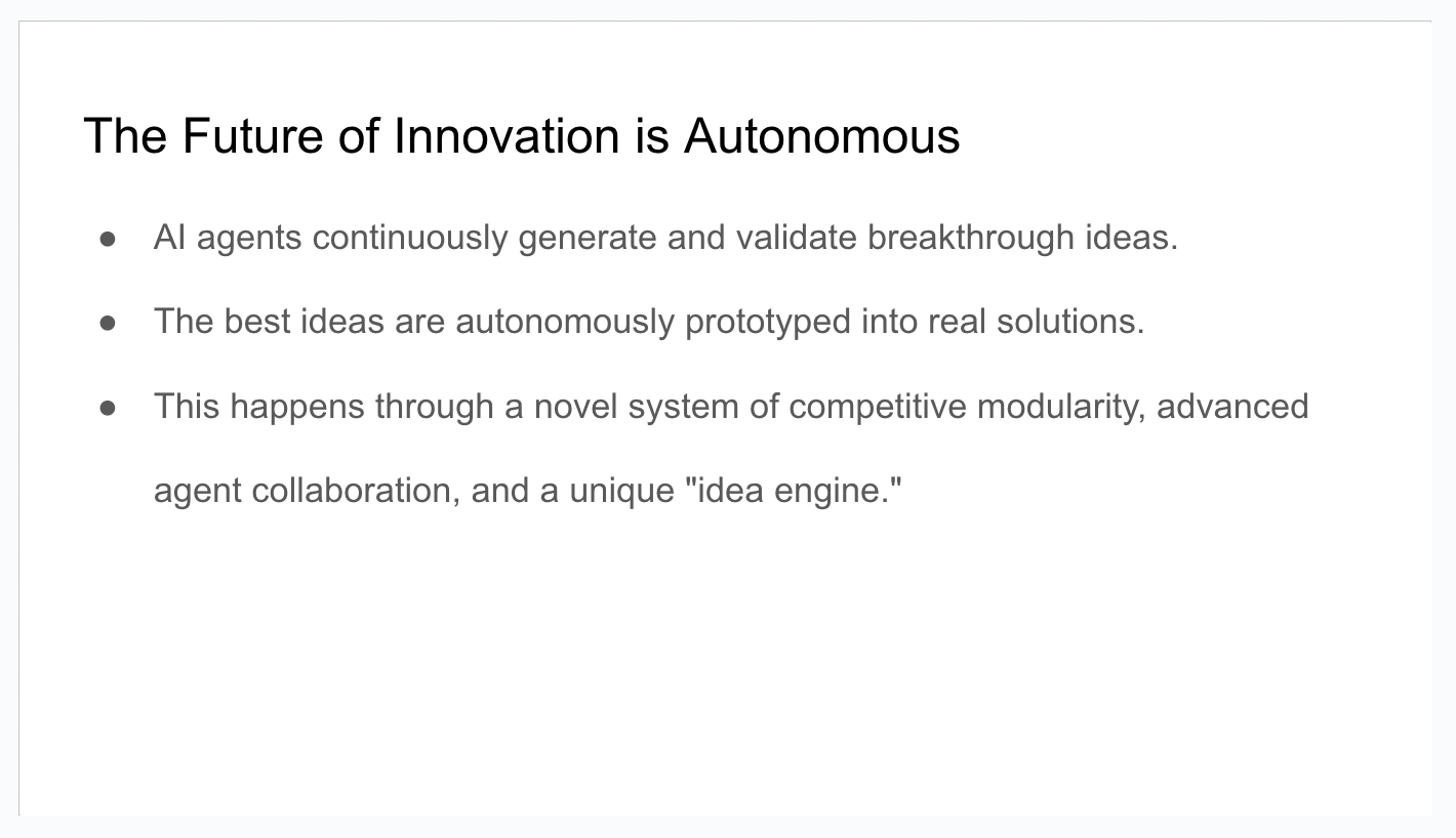 "The implications of this modular, agent-driven approach extend far beyond any single organization or industry. By establishing clear interfaces for AI systems to exchange value - whether that's ideas, services, or solutions - we're laying the groundwork for an entirely new kind of innovation economy.