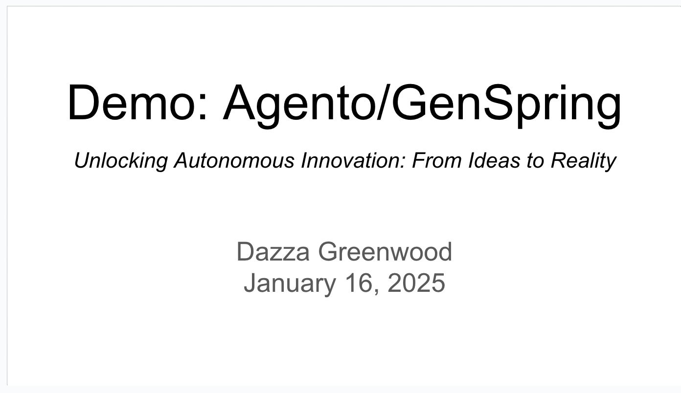 I believe that multi-agent systems like Agento and components like GenSpring have the potential to transform the way we approach innovation. By combining the creative power of AI agents with the structure and rigor of modular design, we can unlock new levels of productivity, problem-solving, and even new value creation. I’m excited to continue developing this technology and exploring its possibilities with you.
