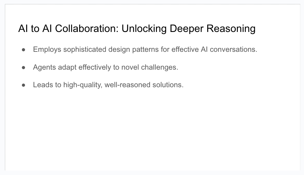 "What makes this system unique is how it orchestrates AI conversations in a way that mirrors successful human-AI collaboration patterns. The agents can guide each other back to relevant topics, seek revision of outputs that don't meet quality benchmarks, and engage in deeper reasoning about complex challenges. By finding that crucial balance between steering and enabling, these agent conversations can adapt to tackle virtually any problem. Think of it as creating the conditions for AI creativity to flourish while ensuring the results remain practical and focused.